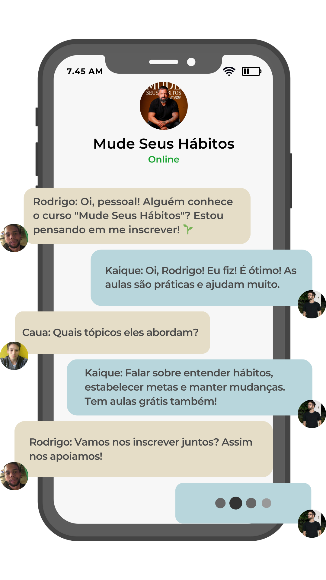 Os participantes têm acesso a um grupo exclusivo onde podem compartilhar experiências, motivar uns aos outros e trocar dicas sobre a jornada de mudança.
